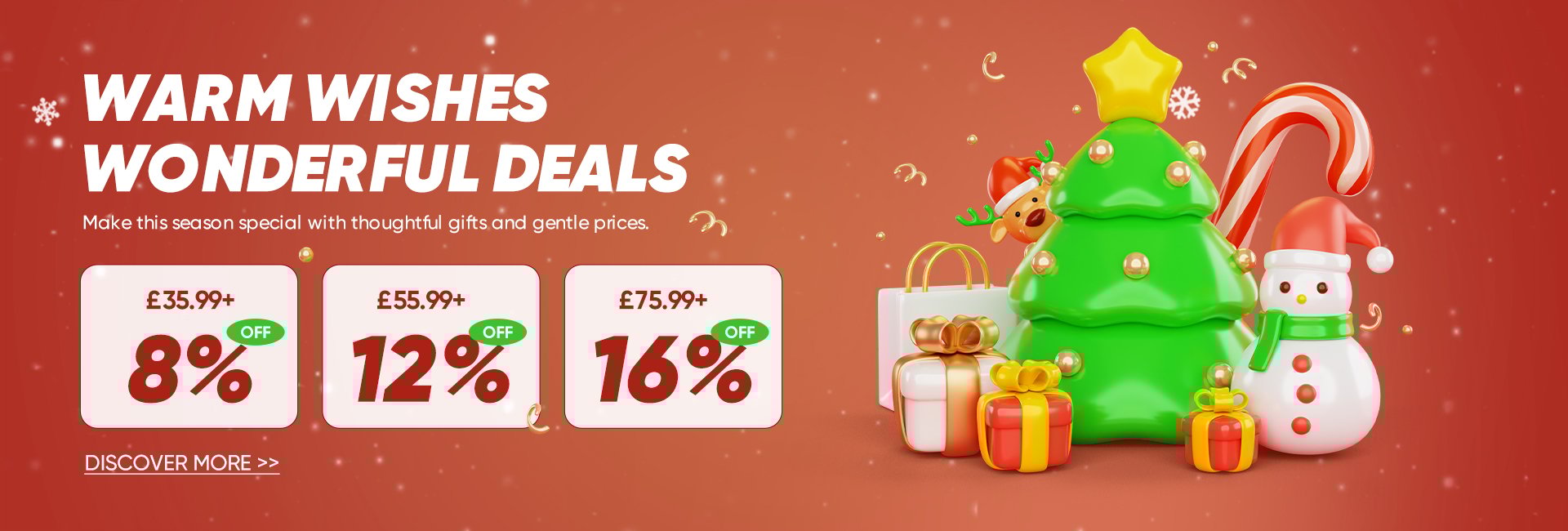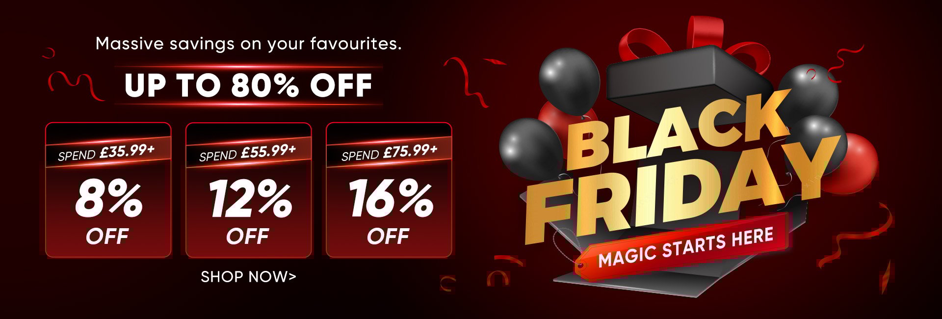 -8% OVER £35.99 | -12% OVER £55.99 | -16% OVER £75.99
