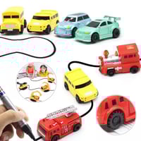 A little sensor under the bottom plate of the car does all of the magic.Simply draw a line with the included magic pen, put the car on that line and it will follow your stroke just magically.