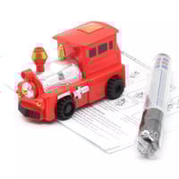 A novelty Inductive Toy: By drawing lines on paper with a black pen, the robot can move, following the lines.